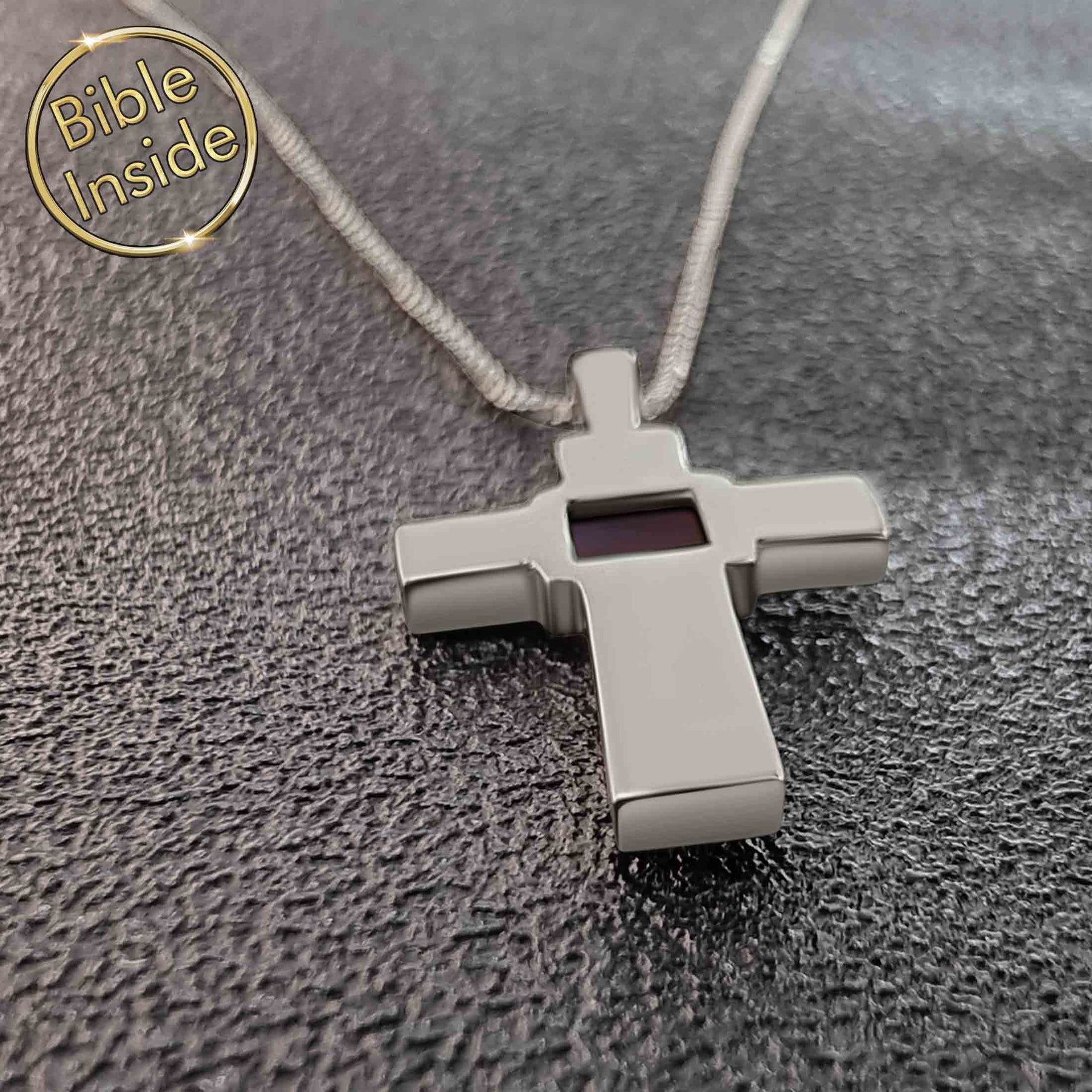 Each of our jewelry pieces has a hidden treasure: the entire Bible written inside the brown square. Our designs complement the holy Bible, wrapping it in beautiful jewelry.