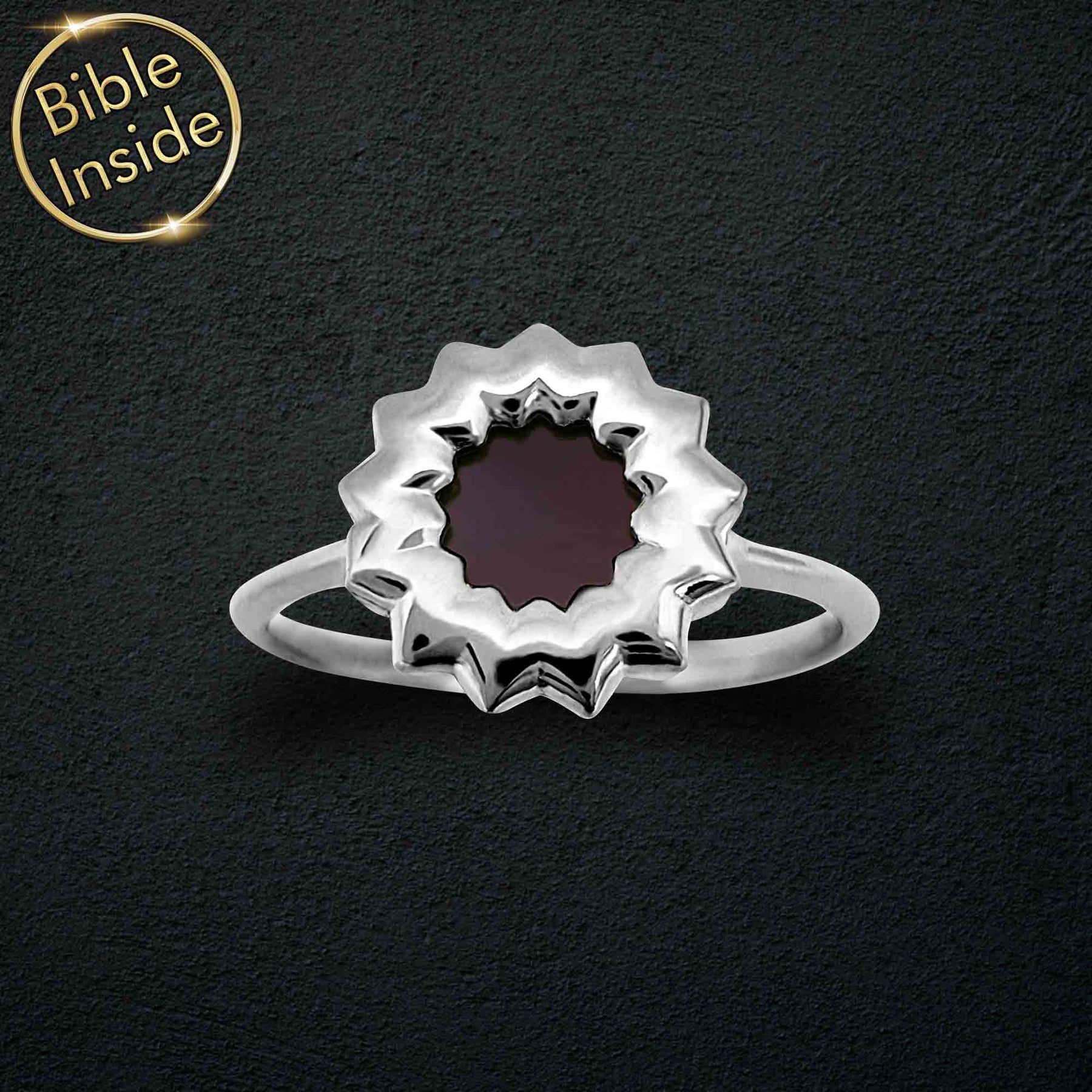 Valentine's gift for friend flower ring with nano Bible chip for Christian women