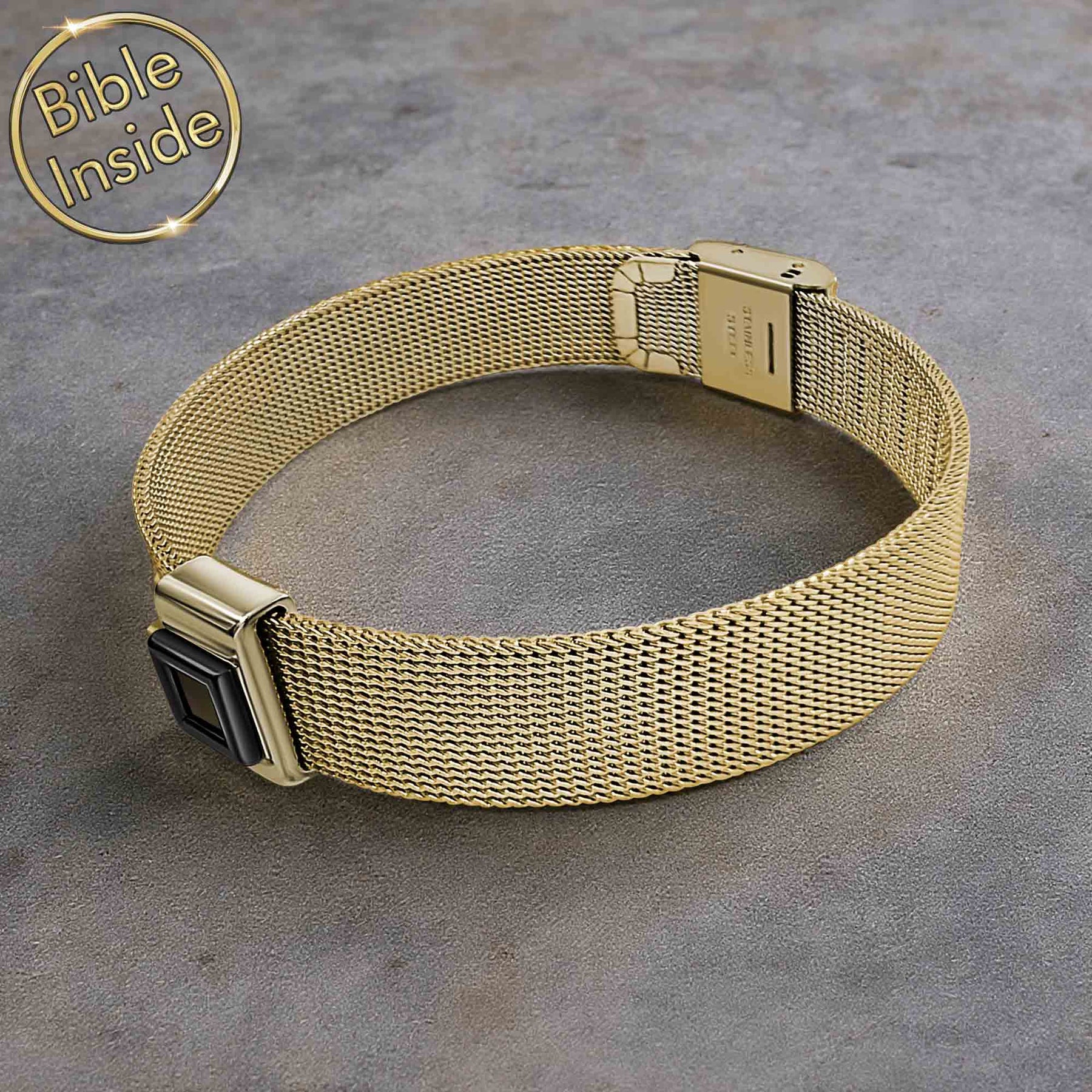 The Christians unique jewelry gift bracelet showcases state-of-the-art craftsmanship with a nano Bible chip measuring 0.2"/0.5cm embedded within a refined square design. This microchip Bible contains the complete New Testament, visible only under a 1000x metallurgical microscope. The square symbol represents stability, foundation, truth, and righteousness—making this piece deeply significant for believers.