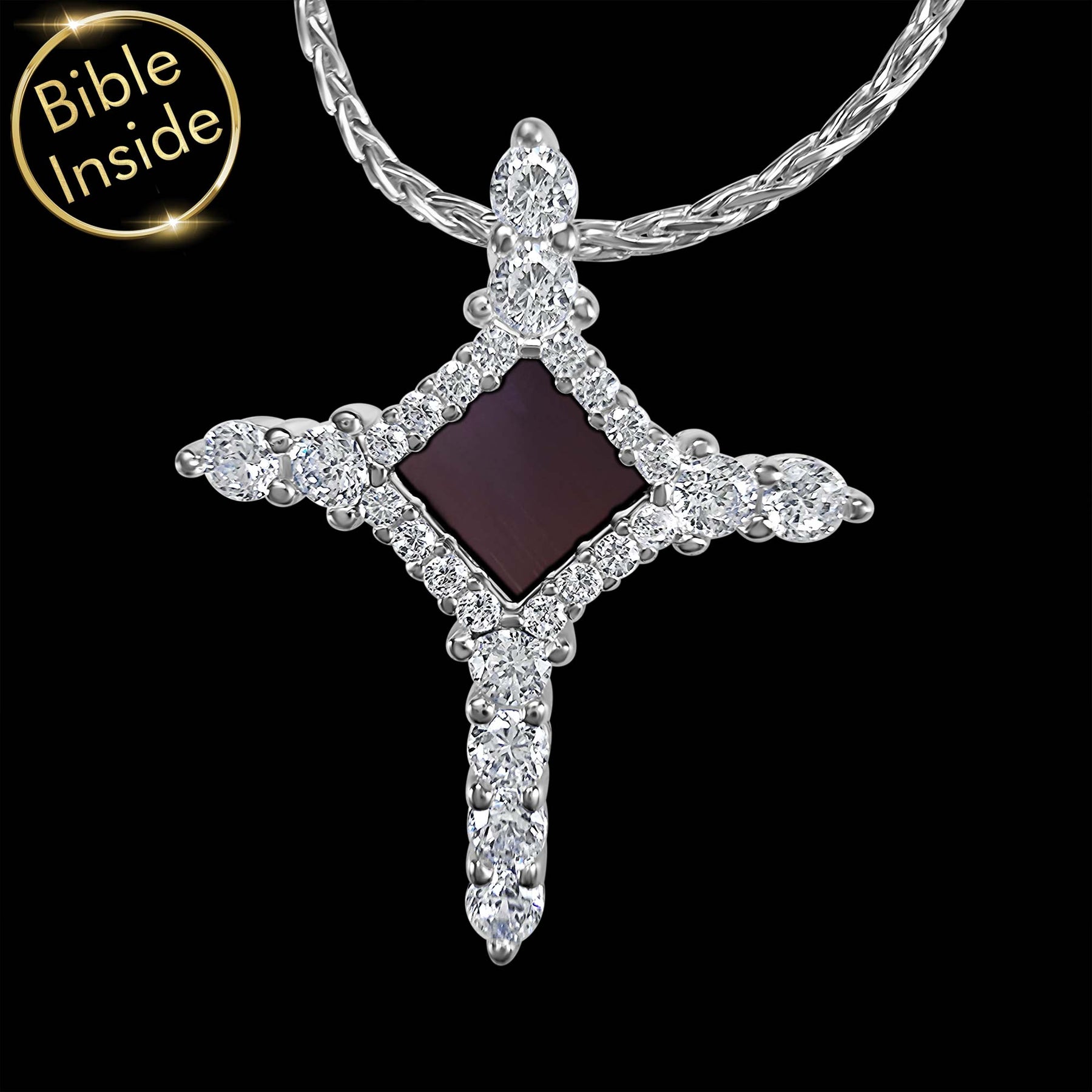 2. What is a Bible cross necklace in this design? This jewelry features a polished cross that holds a microchip Bible, so you can wear scripture close to your heart.