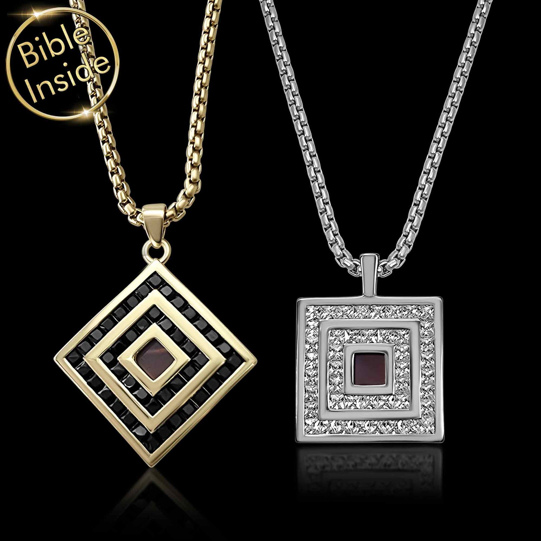 Men's smallest Bible necklace with Romeo & Juliet Necklaces, scripture inside