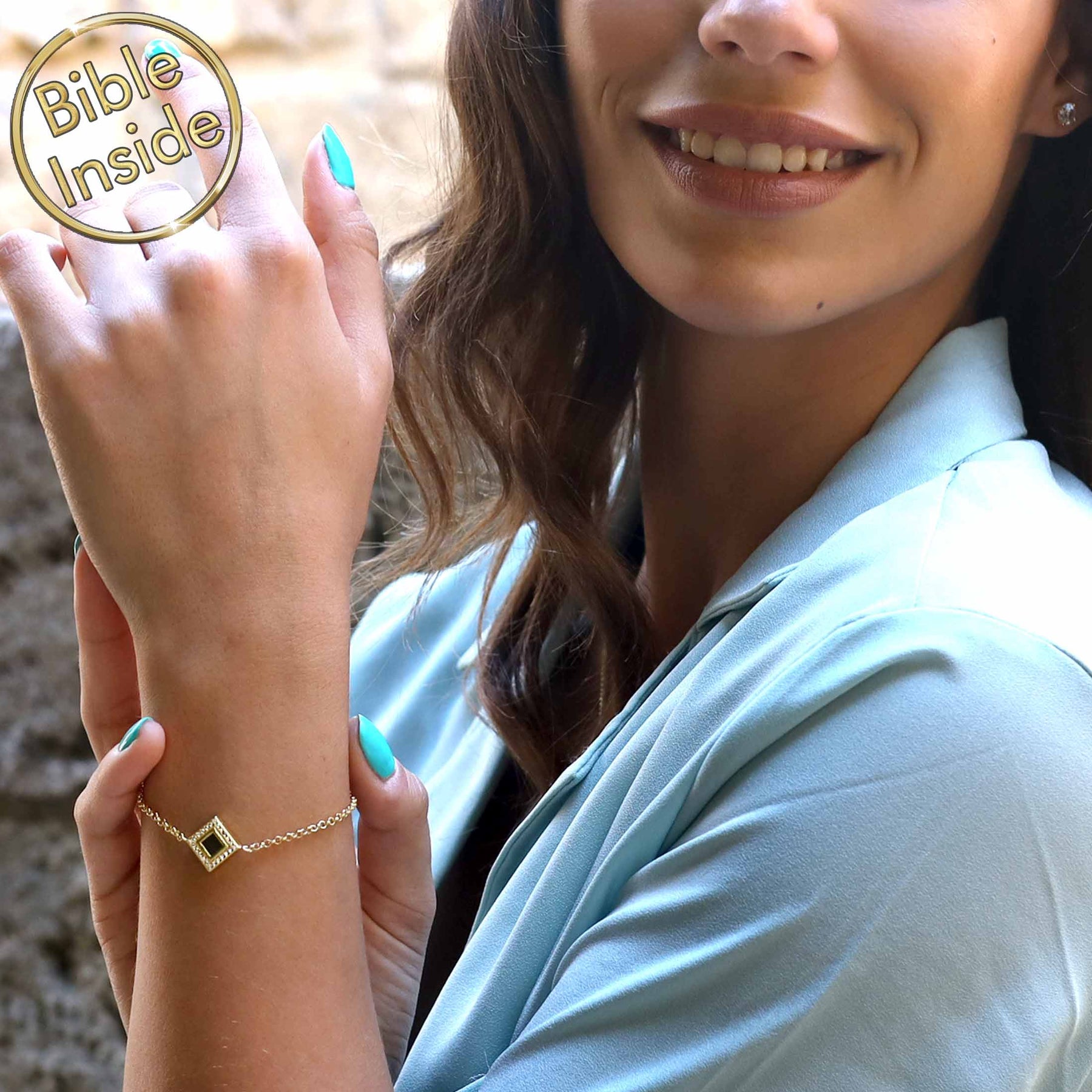 Unique valentine's gift for her – delicate rhombus bracelet for girls, nano Bible