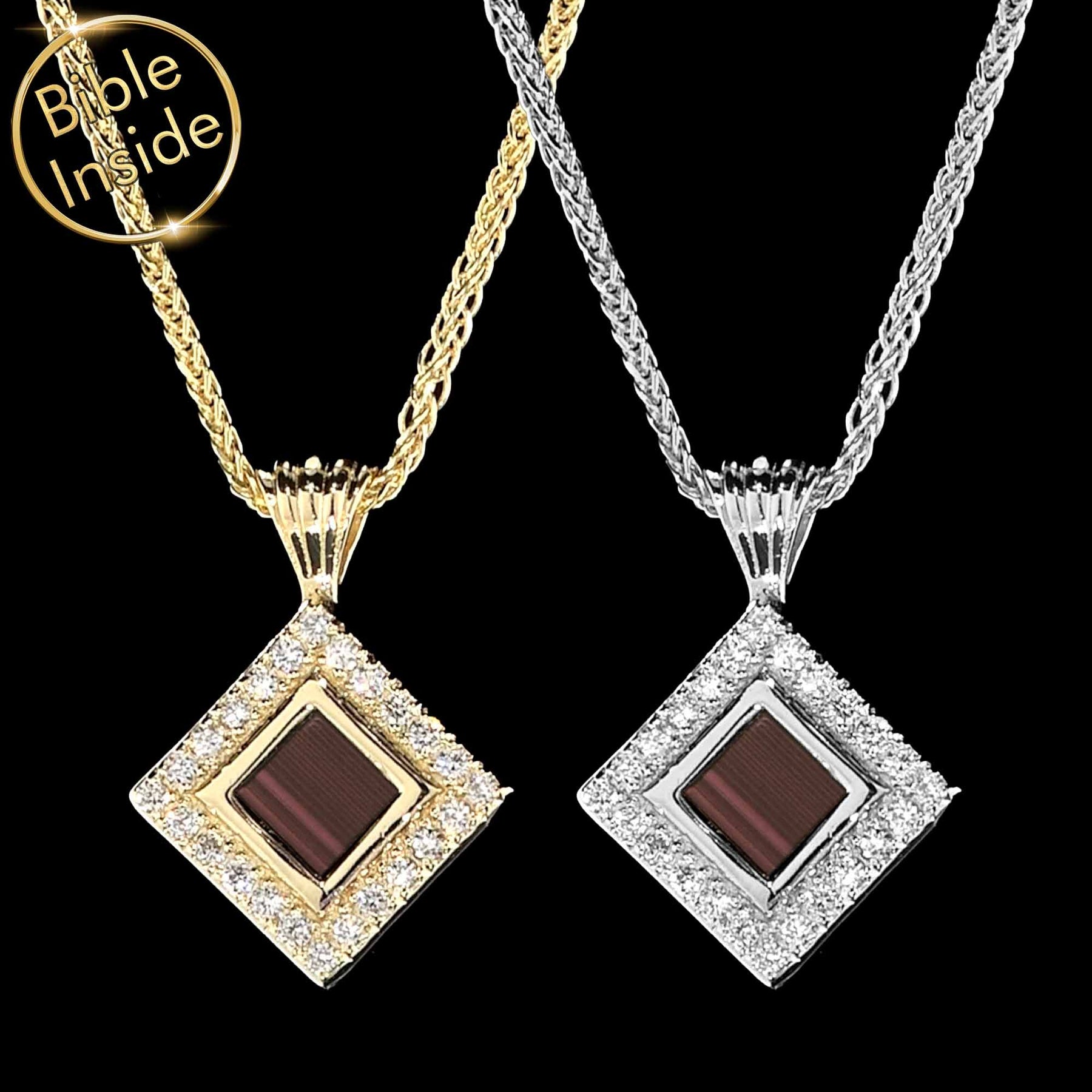 Valentines jewelry rhombus necklace with nano Bible – Christian gift
