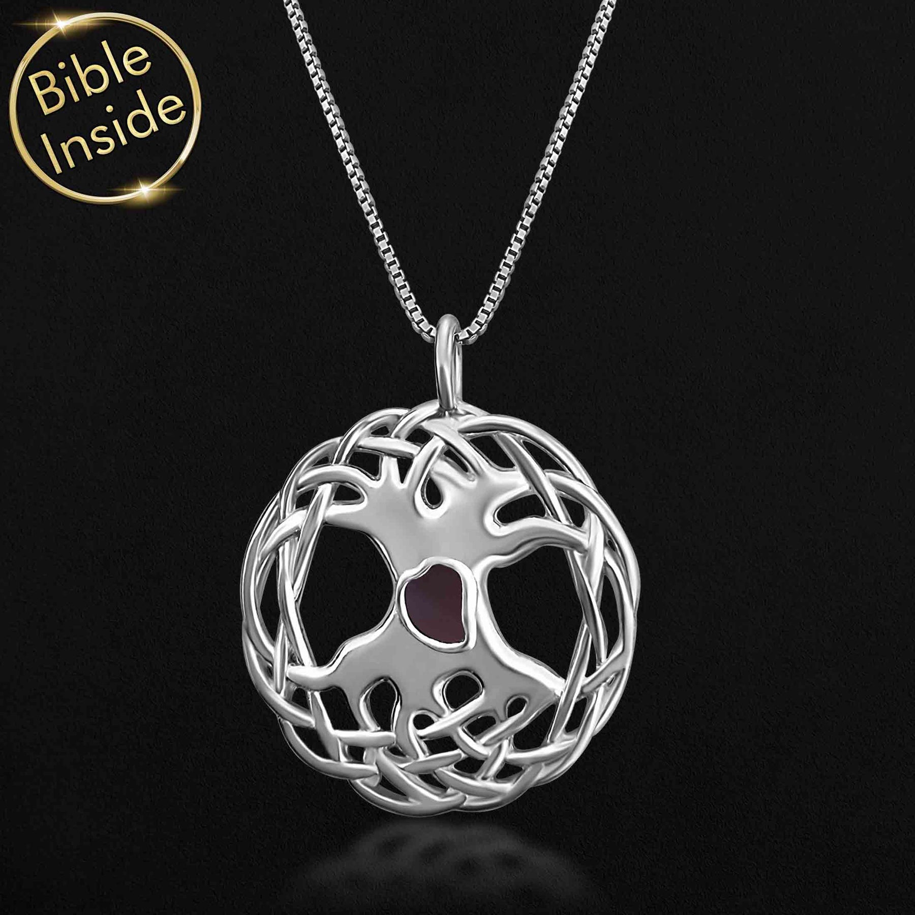 Christian necklace Valentine gift for friend featuring Tree of Life and micro Bible