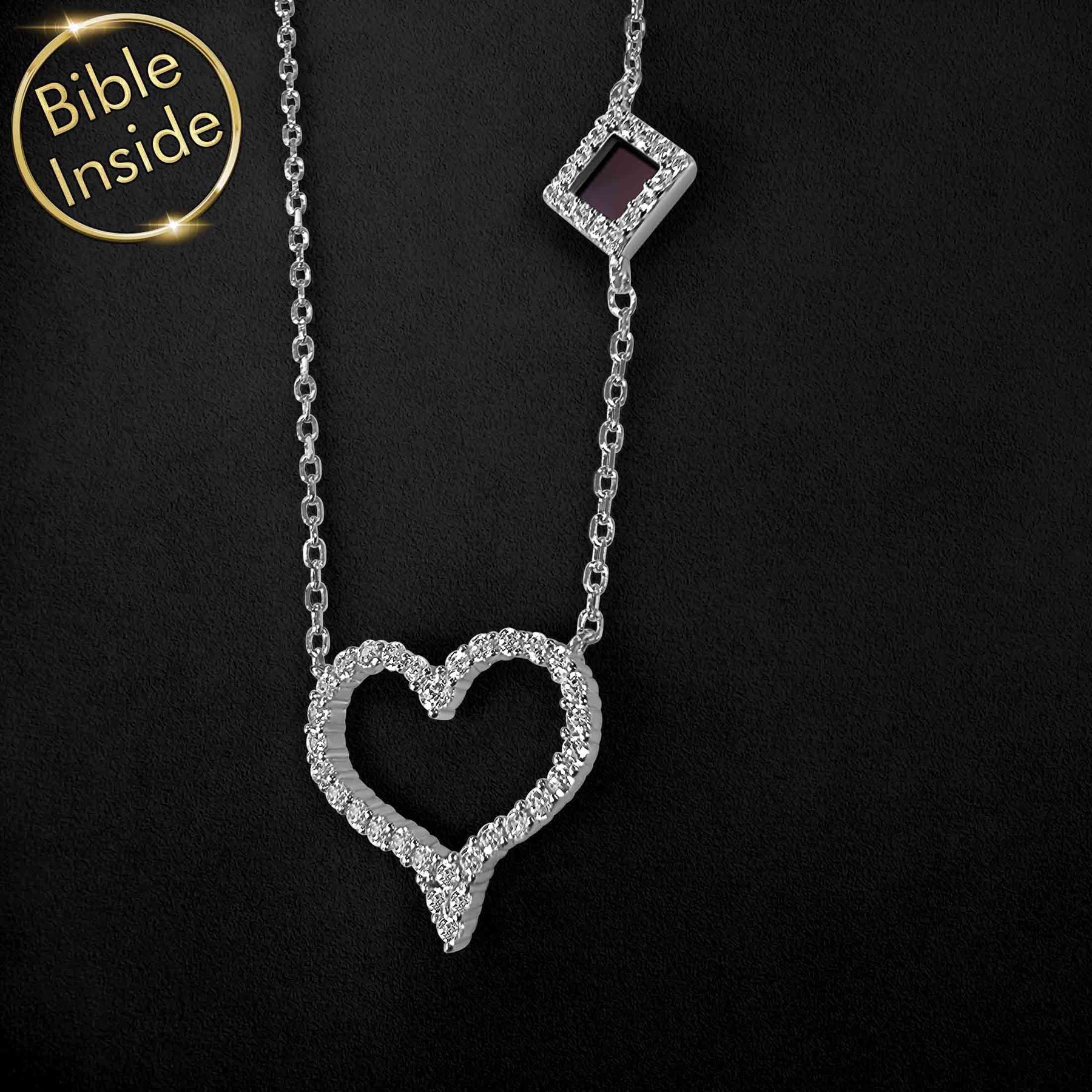 White gold heart necklace with micro bible, Valentine's day gift for friend