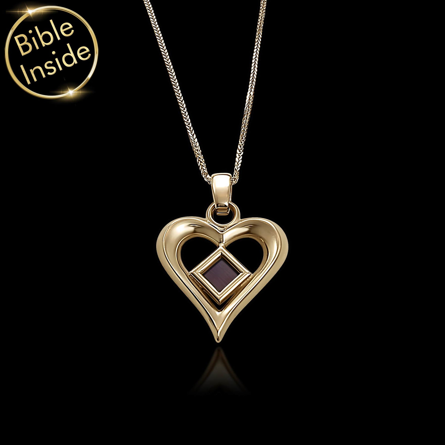Heart-shaped Christian jewelry with micro Bible – Valentine's day gift for friend