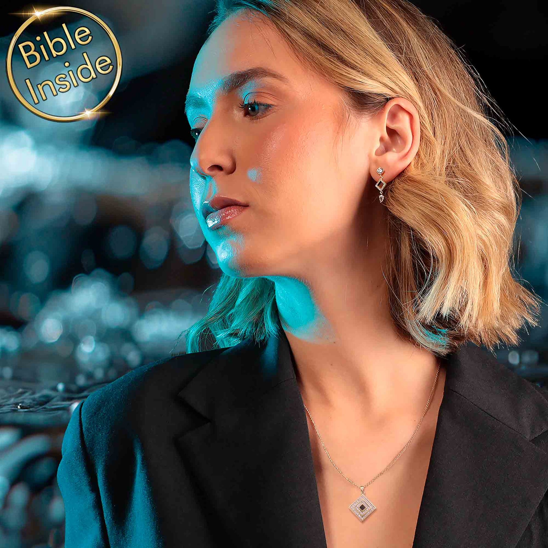 Valentine's present for friend, this rhombus necklace holds a micro Bible chip in a sleek, highly polished design. A modern valentine gift for friend with scripture inside, it brings a quiet reminder of faith while staying easy to wear with everyday outfits.