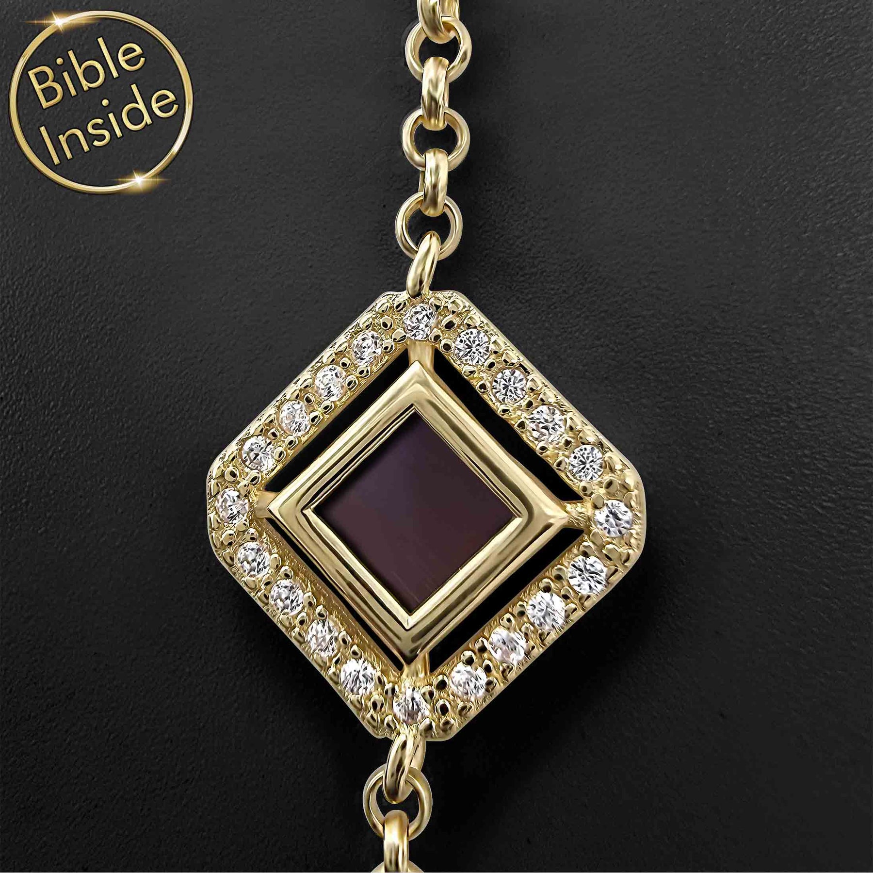 Valentine gift for me bracelet featuring a Nano Bible chip and shimmering rhombus design. This elegant piece carries the New Testament engraved inside a tiny square, blending fashion with faith in a timeless expression of devotion and style.
